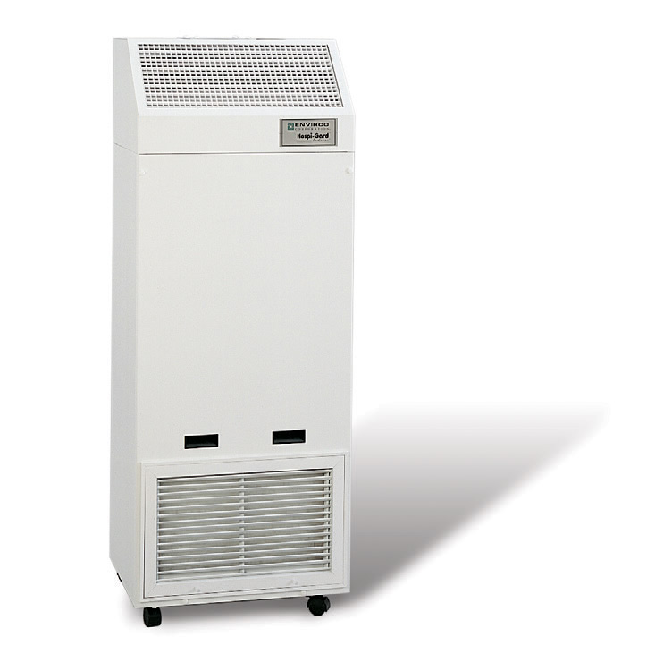 The Hospi-Gard IsoClean filter contains 200 square feet of media to extend its usable lifetime before filter loading occurs, resulting in decreased cost and fewer filter changes. Air passing through the HEPA filter is cleansed of 99.99% of particles as small as 0.3 micron. The powerful motor/blower can produce 430-710 cubic feet per minute (CFM) to provide a large number of room air changes per hour to minimize the spread of airborne diseases and contaminants.
